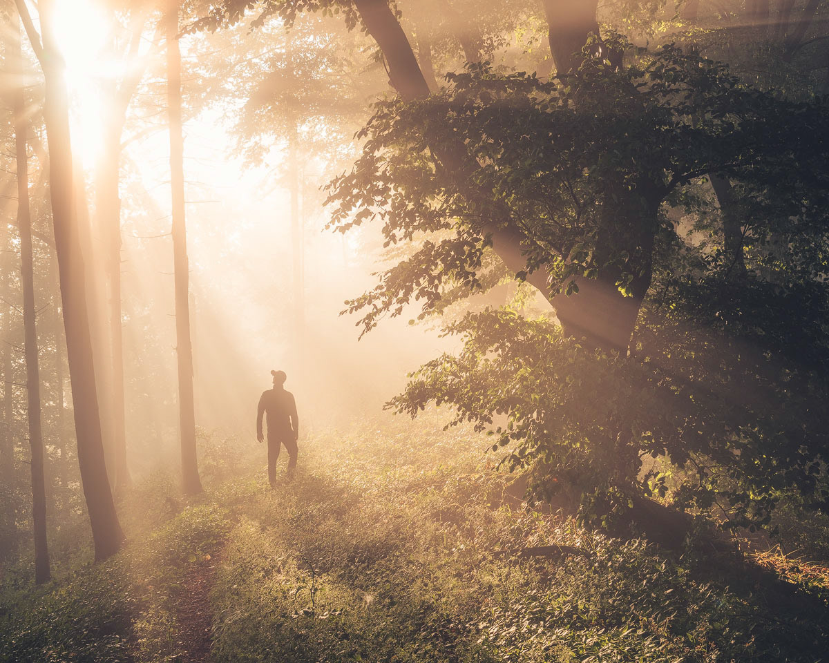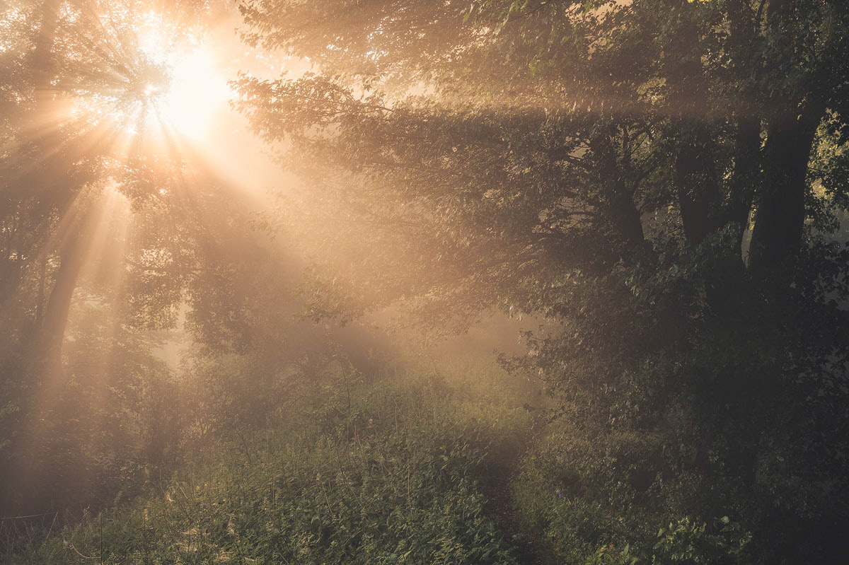 Morning sunshine in the forest.